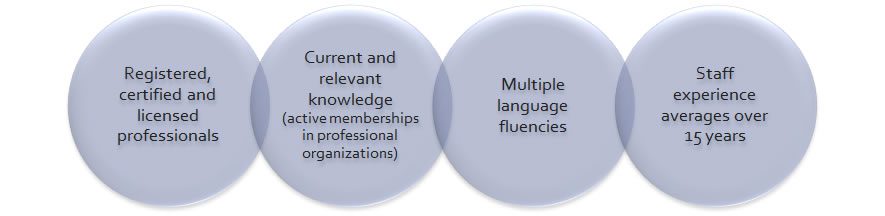 Zia’s staff consists of professionals from diverse backgrounds with extensive experience in providing technical services in their respective field of expertise.  Staff experience averages approximately 15 years and most have active memberships in professional organizations. Many are fluent in multiple languages.